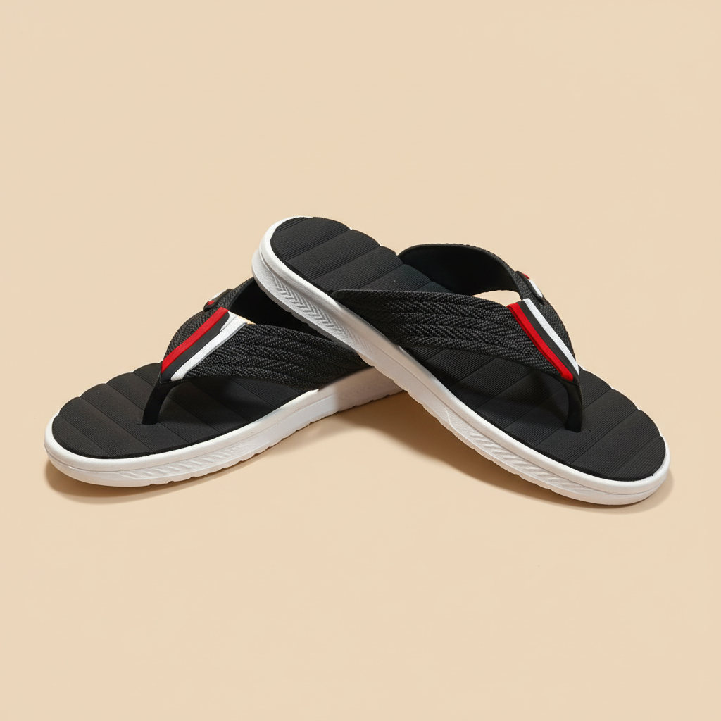 The Sisley Pro Crimson by Sole and Slippers brings a refined, minimalist edge to classic summer footwear. Engineered for the premium Pakistani market, these sandals feature a high-quality EVA (Ethylene Vinyl Acetate) sole in a crisp white contrast, providing exceptional cushioning and impact resistance for all-day wear.